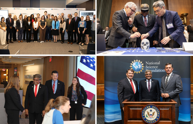 Earlier in the week, NSF hosted a congressional showcase of the 25 National Artificial Intelligence Research Institutes. Sen. Martin Heinrich (D-NM) and Sen. Mike Rounds (R-SD), co-chairs of the Senate AI Caucus, joined Director Panchanathan in welcoming the crowd. In his opening remarks, the director shared more about the critical role NSF has played, and continues to play, in the development of the technology AI systems have been built upon, and more on NSF's efforts surrounding AI workforce training and development. Over 200 Congressional staff and members of the external research community gathered to learn about real-world applications of AI and see firsthand the technologies that are transforming the AI field and the many ways in which federal investments are being used in AI research, innovation, community partnerships and workforce development.