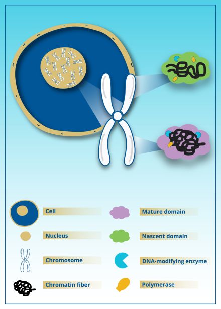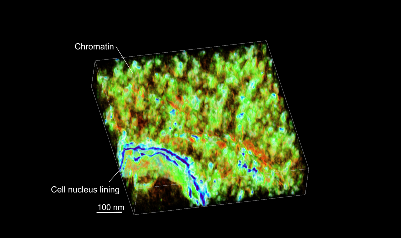 However, this new research shows it's not that simple. Instead, tiny subregions called nanoscale packing domains pair tight and loose configurations together. Loosely packed configurations at the top of these structures guide the cell's machinery to access and read DNA — a process that leads to RNA and, eventually, proteins. Tightly packed configurations are found deeper in the structure, acting as scaffolding to provide stability. Over time, these subregions can repack themselves more tightly or loosely, adjusting which genes are expressed.