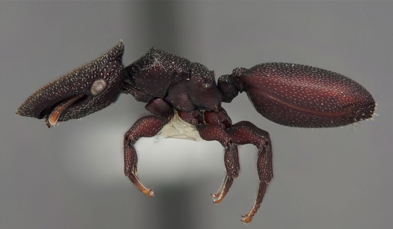 "They are phenomenal animals," Moreau said of the ants. "Not only are they structurally very beautiful; they look like little tanks. They're called turtle ants because when they get frightened or if they're worried about being injured, they pull their legs and antennae in like a little turtle. And the soldiers have these dish-plate heads that they use to block the nest entrance they live in. The nest entrance is exactly the same size as the dish plate, so she just sits there blocking the nest entrance all day and only moves out of the way for other members of the colony, her sisters. So her defense is just literally being a living door."